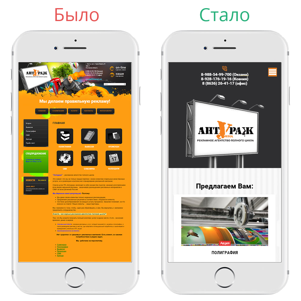 Мы предлагаем вам услуги по редизайну Вашего сайта. Адаптивный дизайн сделает Ваш сайт не только привлекательным, но и позволит Вам увеличить результативность Вашего ресурса на 25-55%, за счет корректного отображения на всех устройствах. Теперь клиентов, посещающих Ваш сайт с мобильных устройств вы никогда не потеряете.