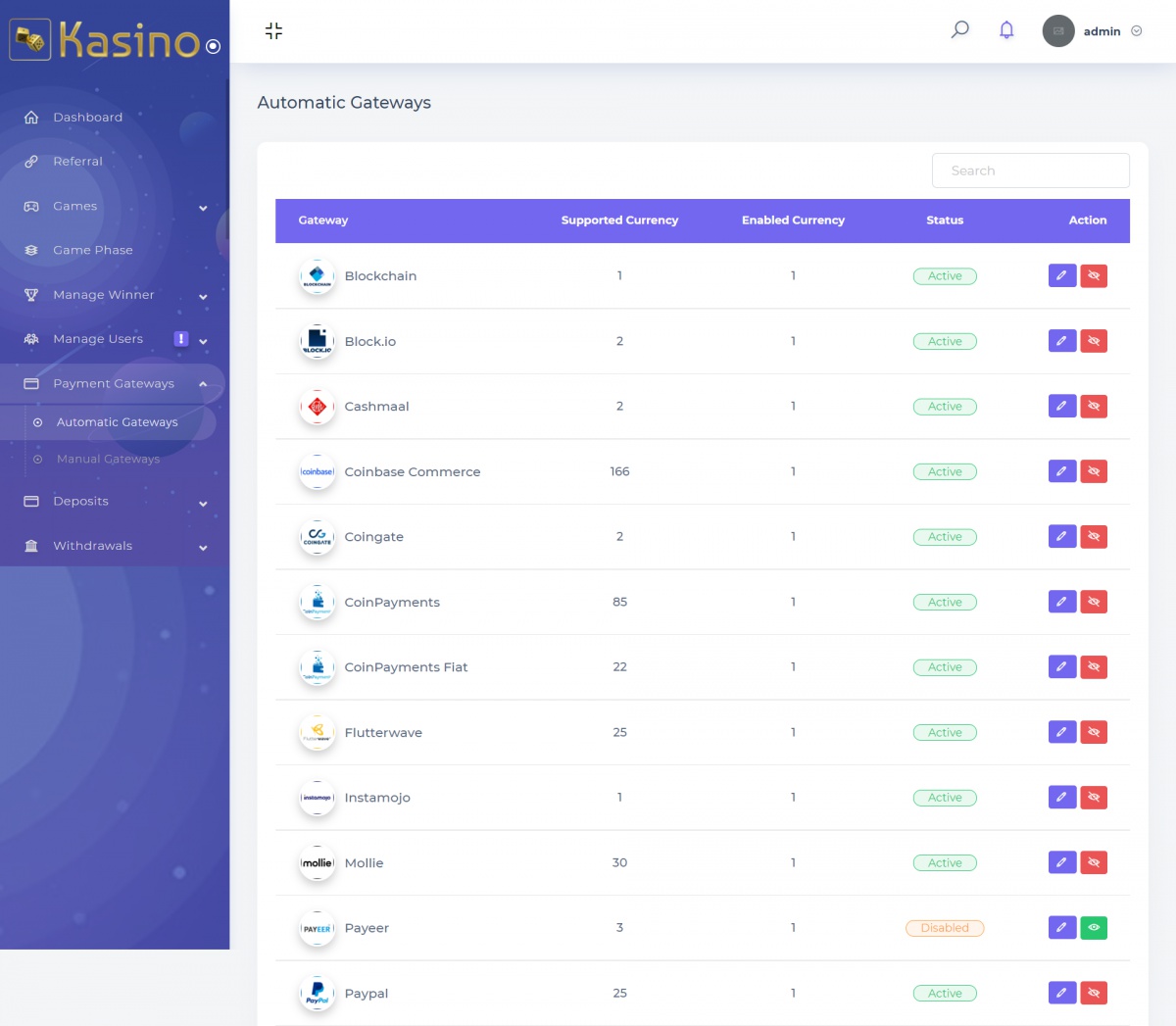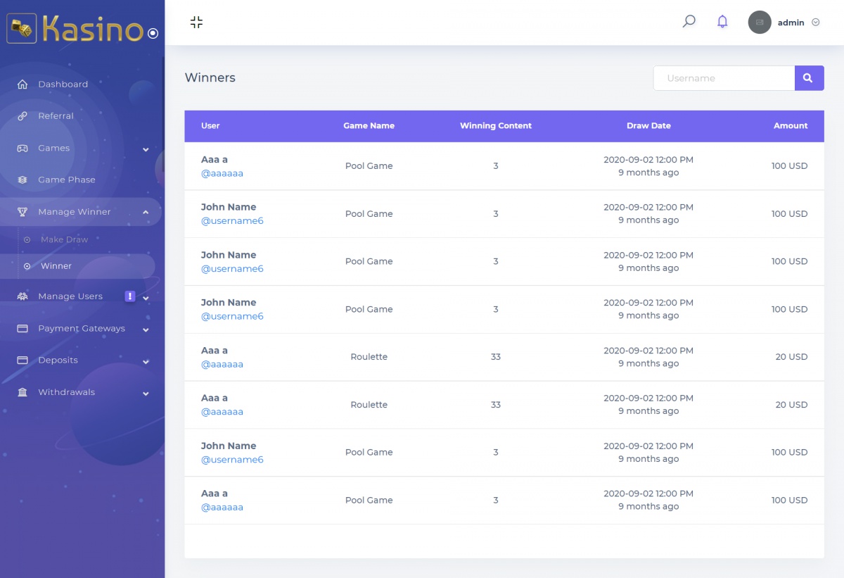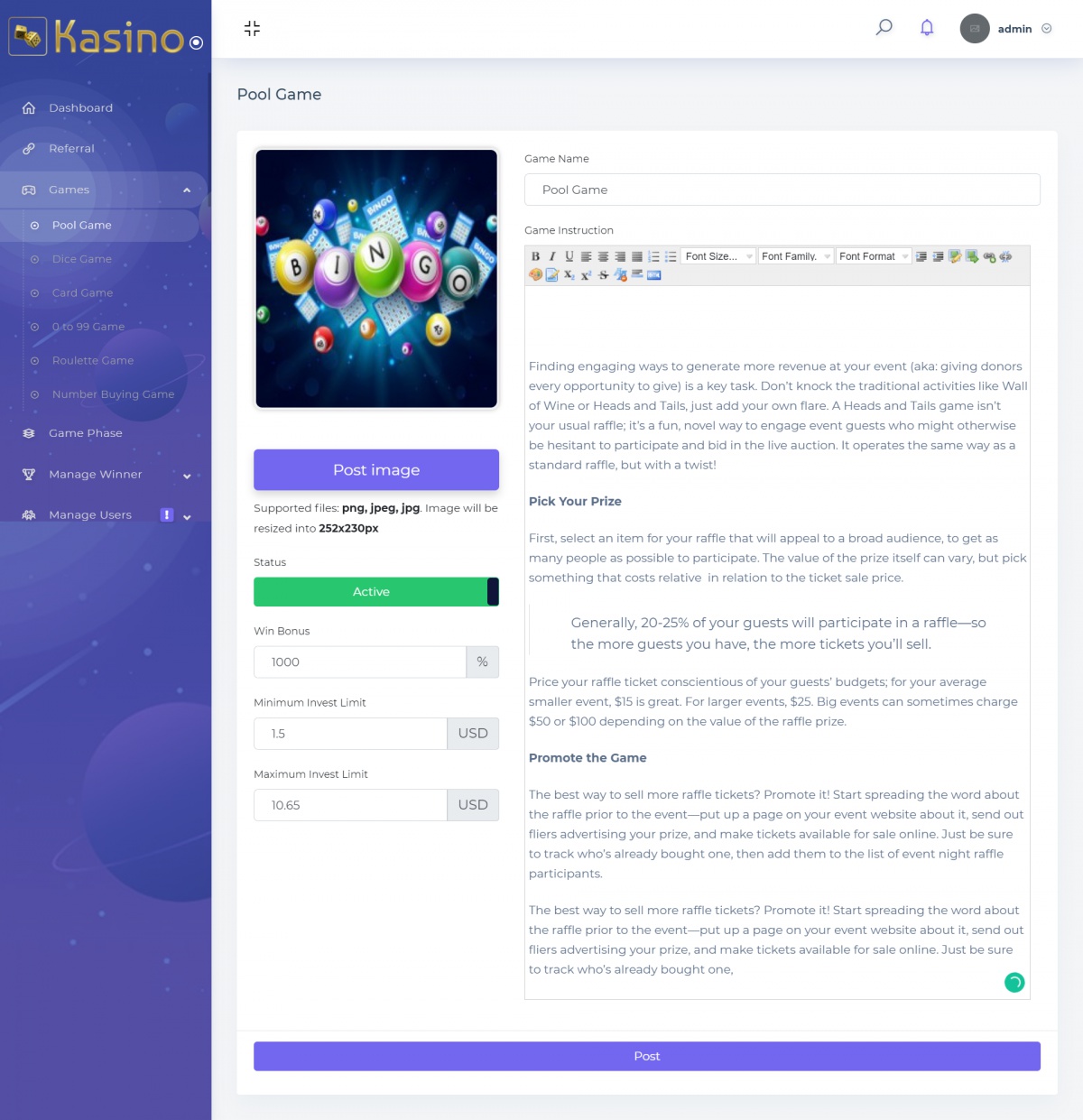 • Информационный раздел «о казино»